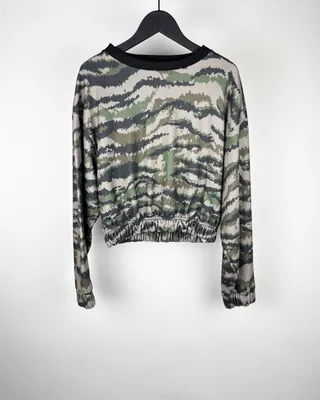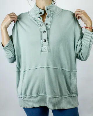 Sweater de felpa verde claro con estampa y bordado justa petra